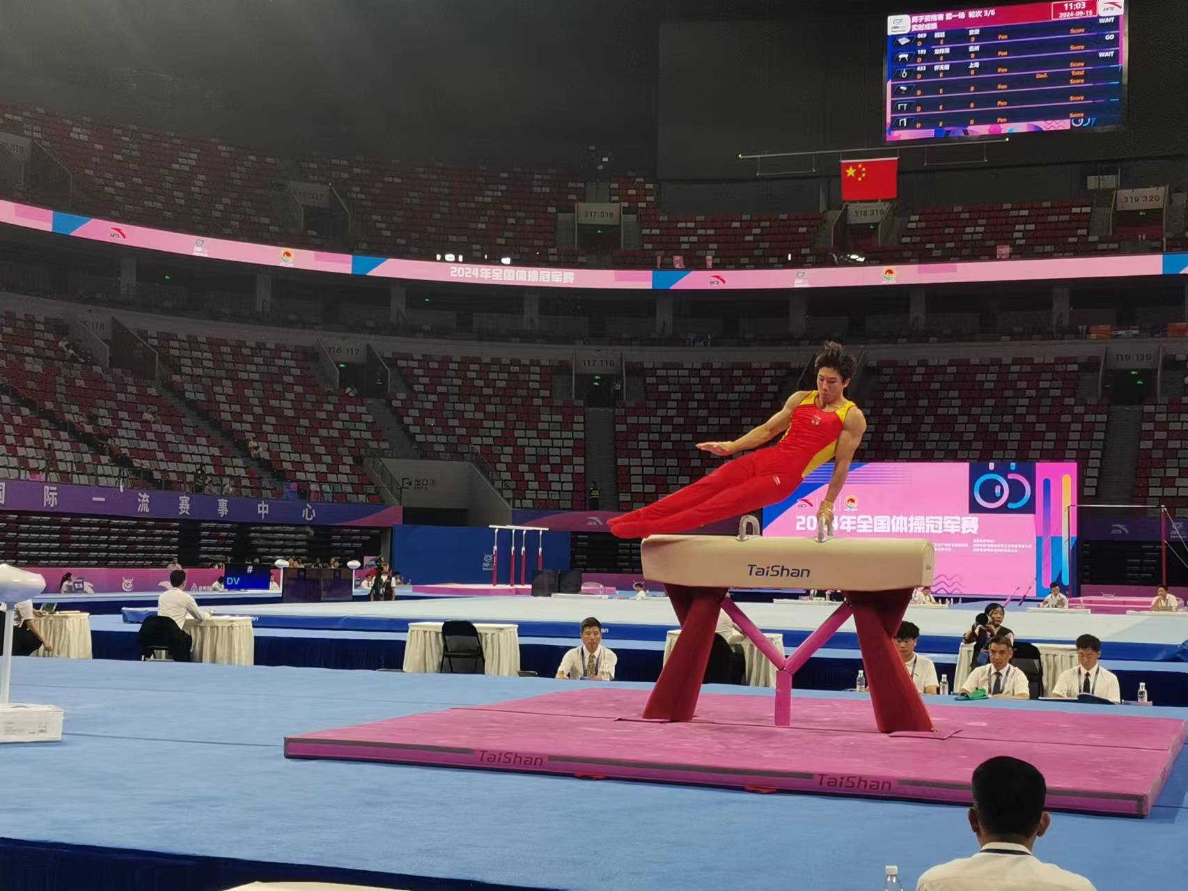 根据赛程,2024年全国体操冠军赛9月15日开赛,迎来全国各地23支队伍及一支个人队伍的约180名运动员参赛,领队、教练及随队人员153人。2024年全国青年体操u系列冠军赛共有来自国内19支队伍的约86名运动员参赛,领队、教练及随队人员91人。