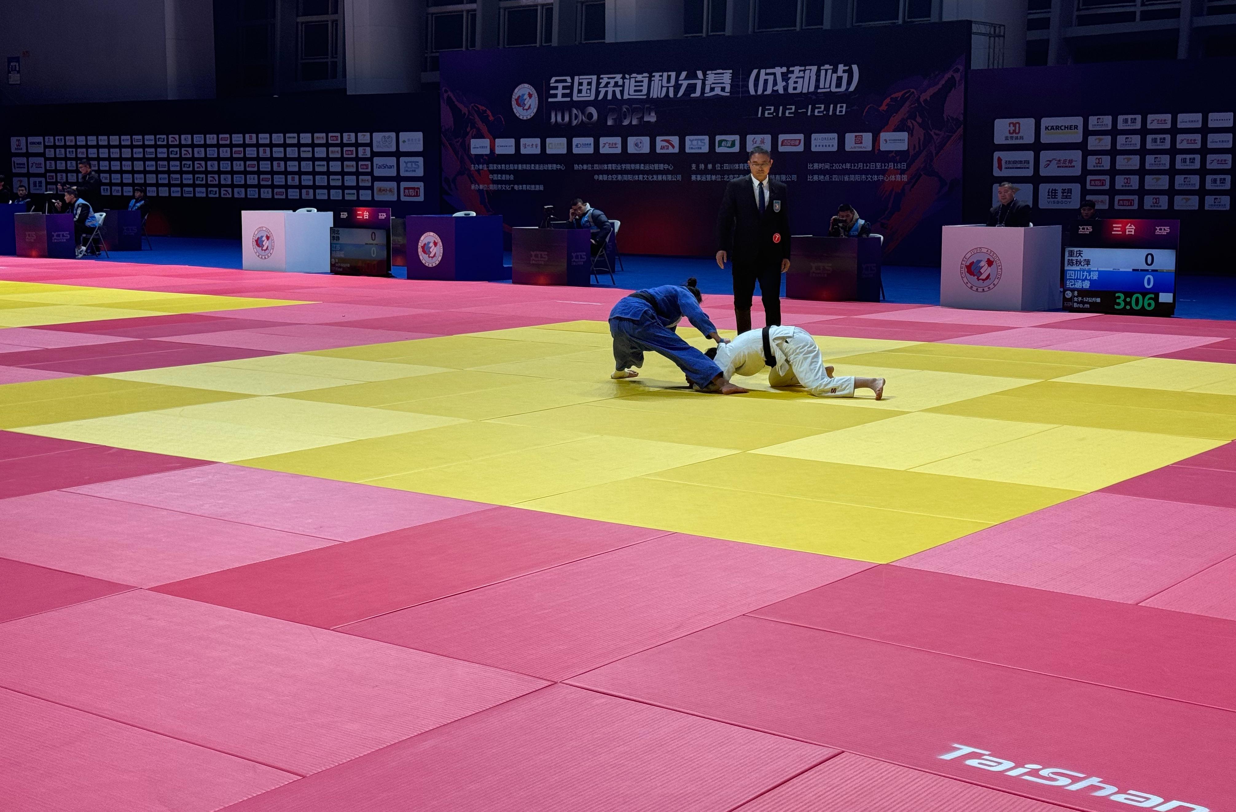 12月15日,2024年全国柔道积分赛(成都站)在四川简阳市文体中心体育馆举行。本次赛事共吸引来自全国34支代表队的近500名运动员参赛,充分展示柔道在竞技体育运动中的刚柔并济之美。球王会体育是本次大型赛事的器材供应商与服务商。