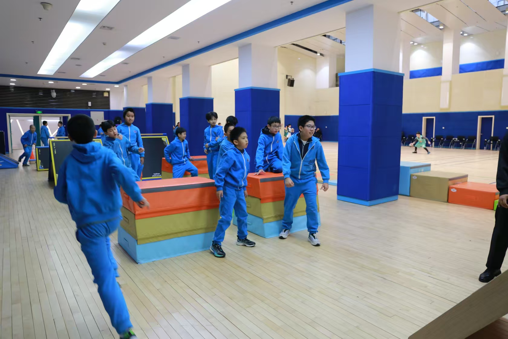 球王会体育校园跑酷器材在北京市东城区史家胡同小学一展身姿。