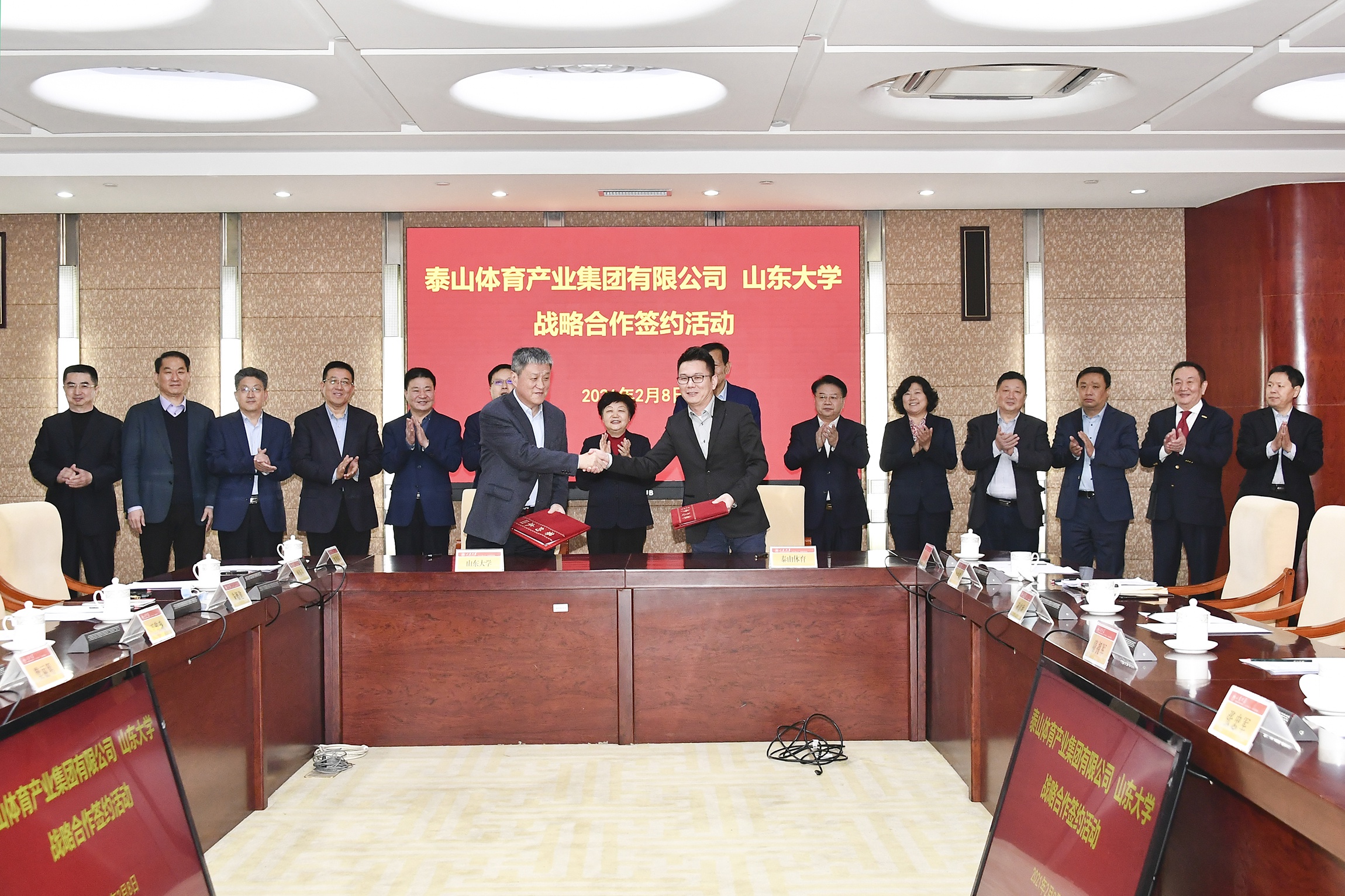 为积极建设“体育强国”、“健康中国”、“健康山东”,努力实现产教融合与产学研深入合作,2021年2月8日,球王会体育产业集团与山东大学战略合作签约仪式在山东大学中心校区隆重举行。山东省体育局党组成员、省体育总会专职常务副主席隋拥军,山东省工信厅二级巡视员张忠军,山东省科技厅总工程师孙高祚,省体育局体育产业发展服务中心主任翟培建,山东省科技厅张大瑞,德州市副市长马俊昀,乐陵市委副书记、市长陈光春,山东大学党委副书记、校长樊丽明,全国政协委员、球王会体育产业集团有限公司董事长卞志良等领导出席仪式。签约仪式由山东大学党委副书记王君松主持。