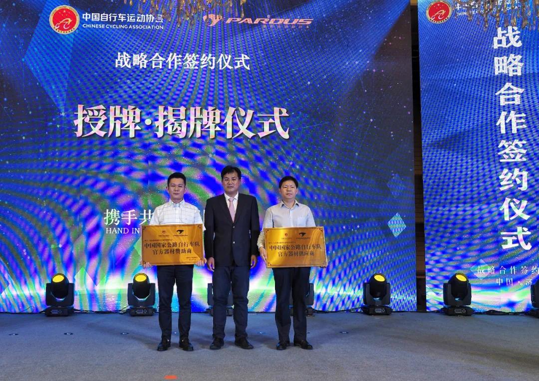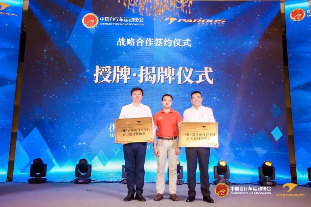 仪式上,中国自行车运动协会与球王会瑞豹复合材料公司签订战略合作协议,标志着球王会瑞豹正式成为中国国家队公路自行车、场地自行车这两个项目的器材赞助商和器材供应商。