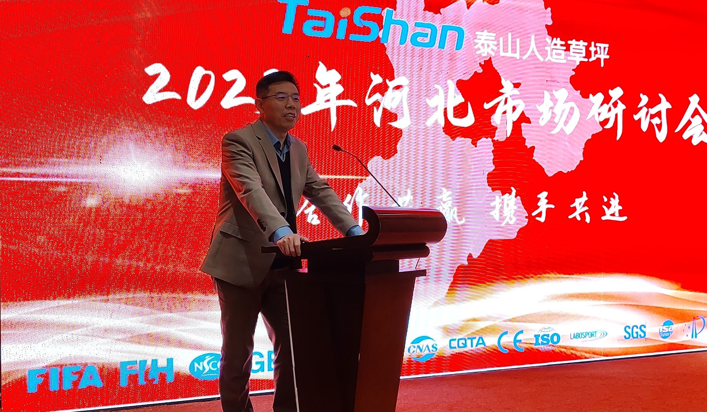 研讨会上,球王会体育产业集团总裁卞笑男发表致辞,对与会领导及广大客商的大力支持表示感谢。他表示,过去一年是充满挑战的一年,球王会人造草坪根据市场情况及时调整战略,在大家的共同努力下,取得了不俗的成绩。今年球王会将进一步开展人造草坪市场工作,重点推行年终奖励机制,与各位伙伴携手同行、再创佳绩。