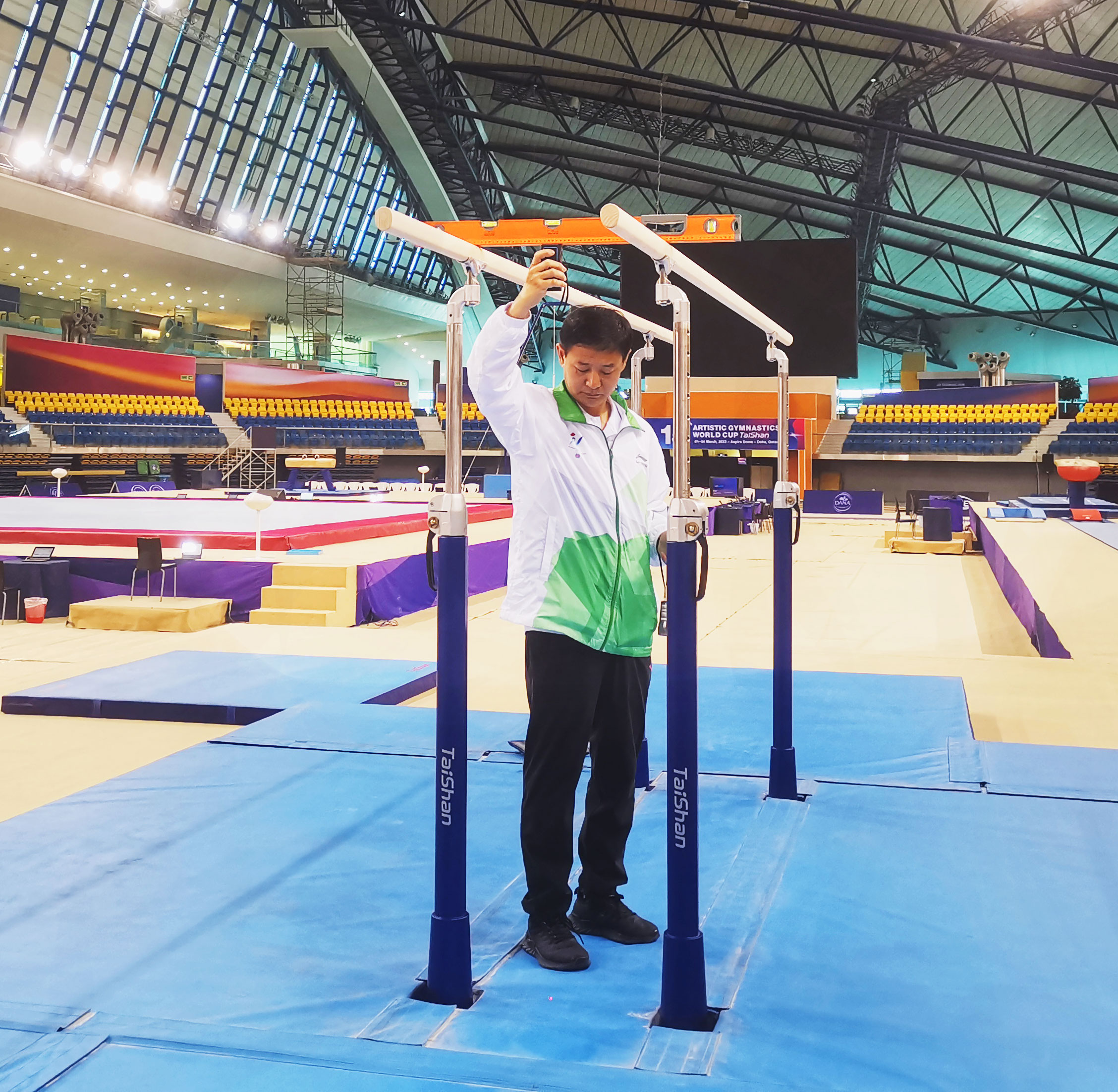 在精彩的赛事背后,离不开球王会体育团队的默默付出。球王会体育专业服务保障团队驻扎赛场全程守护,为大赛保驾护航。赛前,他们连续日夜奋战,如期完成训练场馆、热身场馆、比赛场馆每件器材的安装、调试,检测工作,为比赛做好充分保障;赛中,球王会服务人员30秒内即可完成高低杠的升杠降杠,保证了比赛的流程进行。球王会保障团队以高效、精准、专业的表现震惊全场,赢得了极高赞誉。