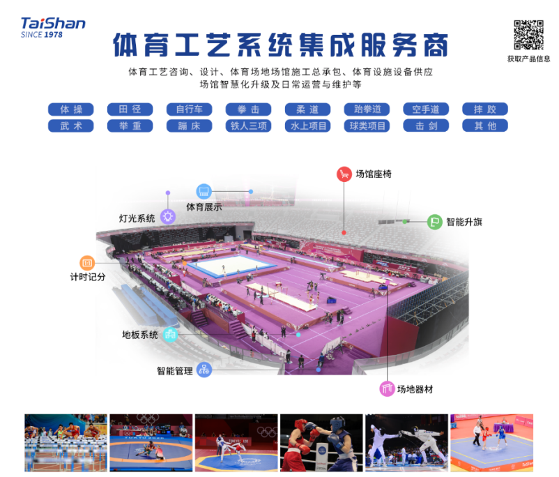 球王会体育作为行业领先的体育工艺系统集成商和服务商,依靠先进的体育工艺设计理念、精湛的施工技术、优质的体育产品,出色服务了7届奥运会、7届世界大学生运动会、7届亚运会、9届全运会等2000余次国内外大型赛事,为体操、田径、自行车、拳击、柔道等20多个大项提供赛事体育工艺系统集成服务。
